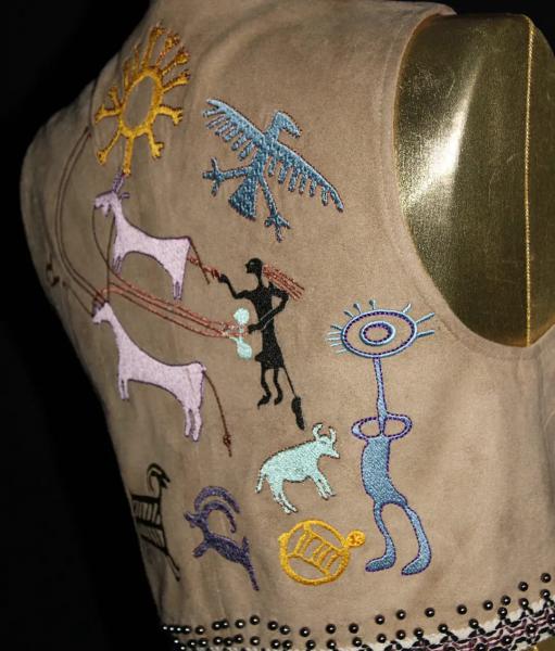 Orta Asya'da bulunan Türklere ait kaya resimlerini yeleklerimize nakışladık.